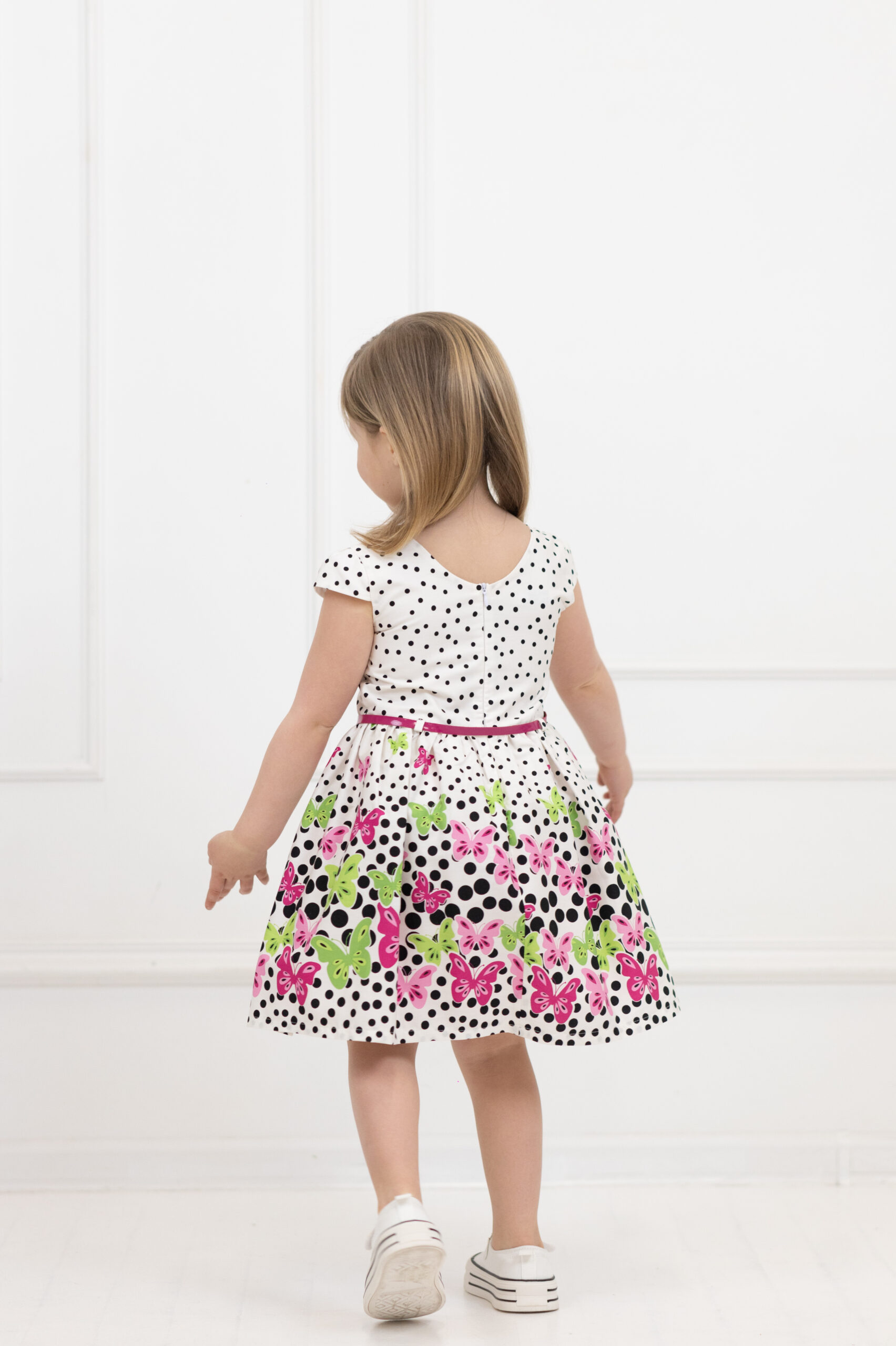 Sukienka z tkaniny bawełnianej w czarne kropki.