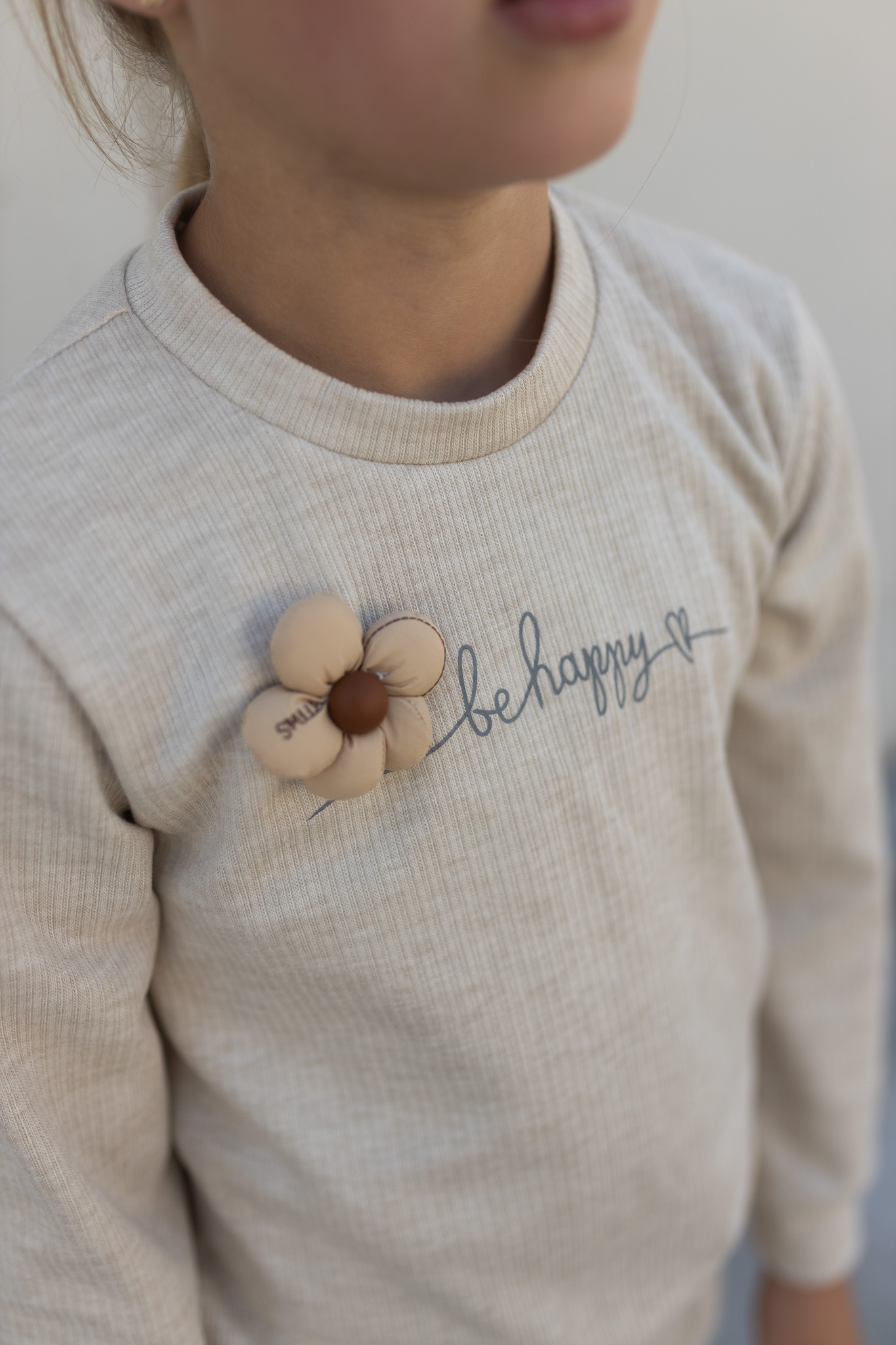 Bluza ozdobiona napisem “Be Happy” oraz kwiatkiem
