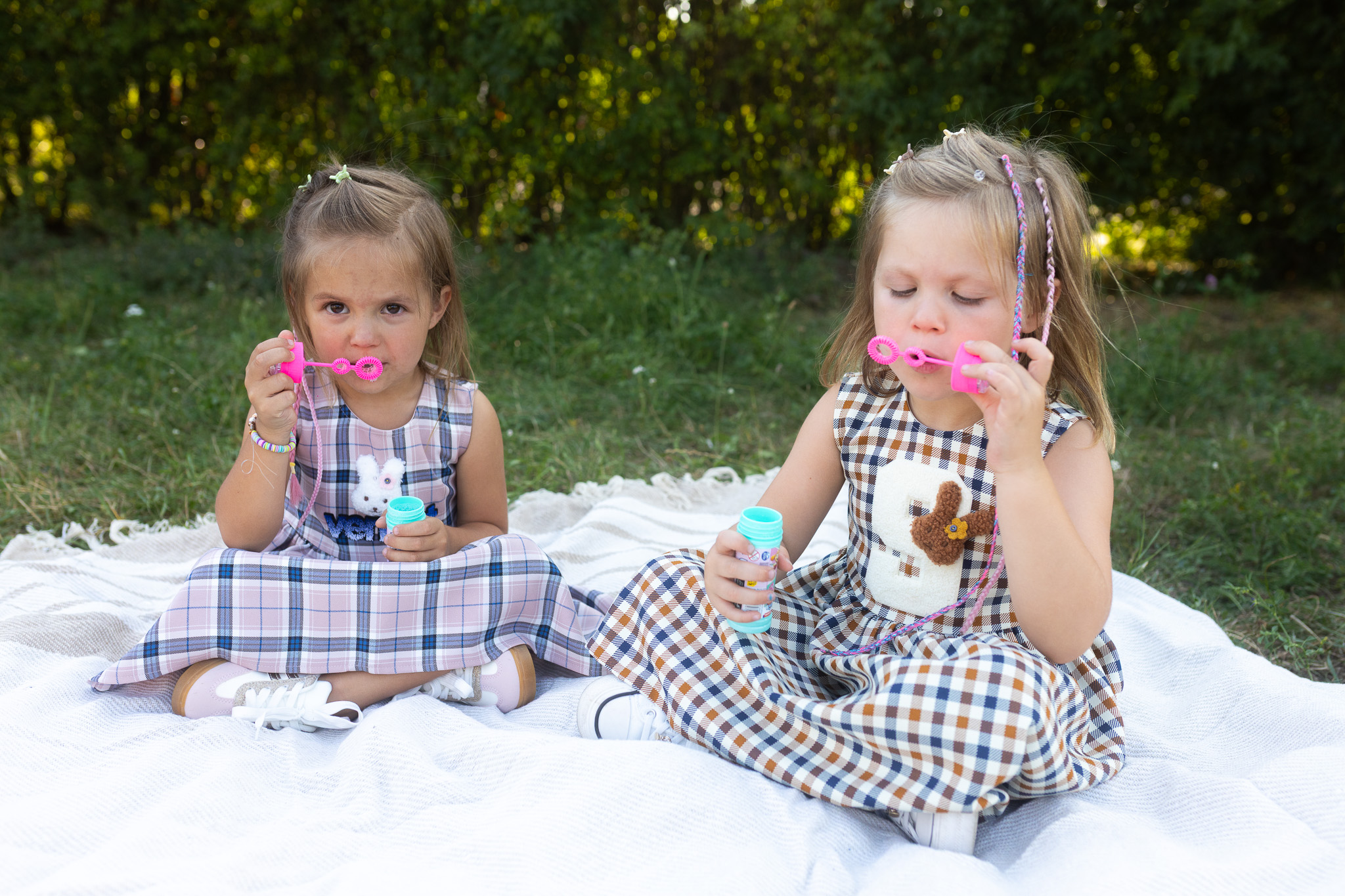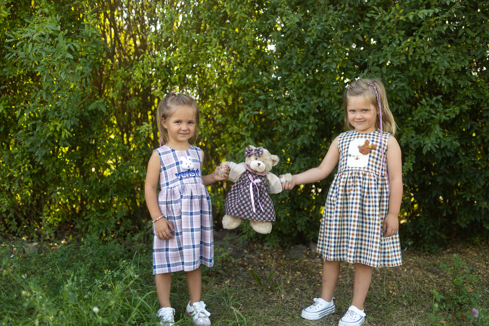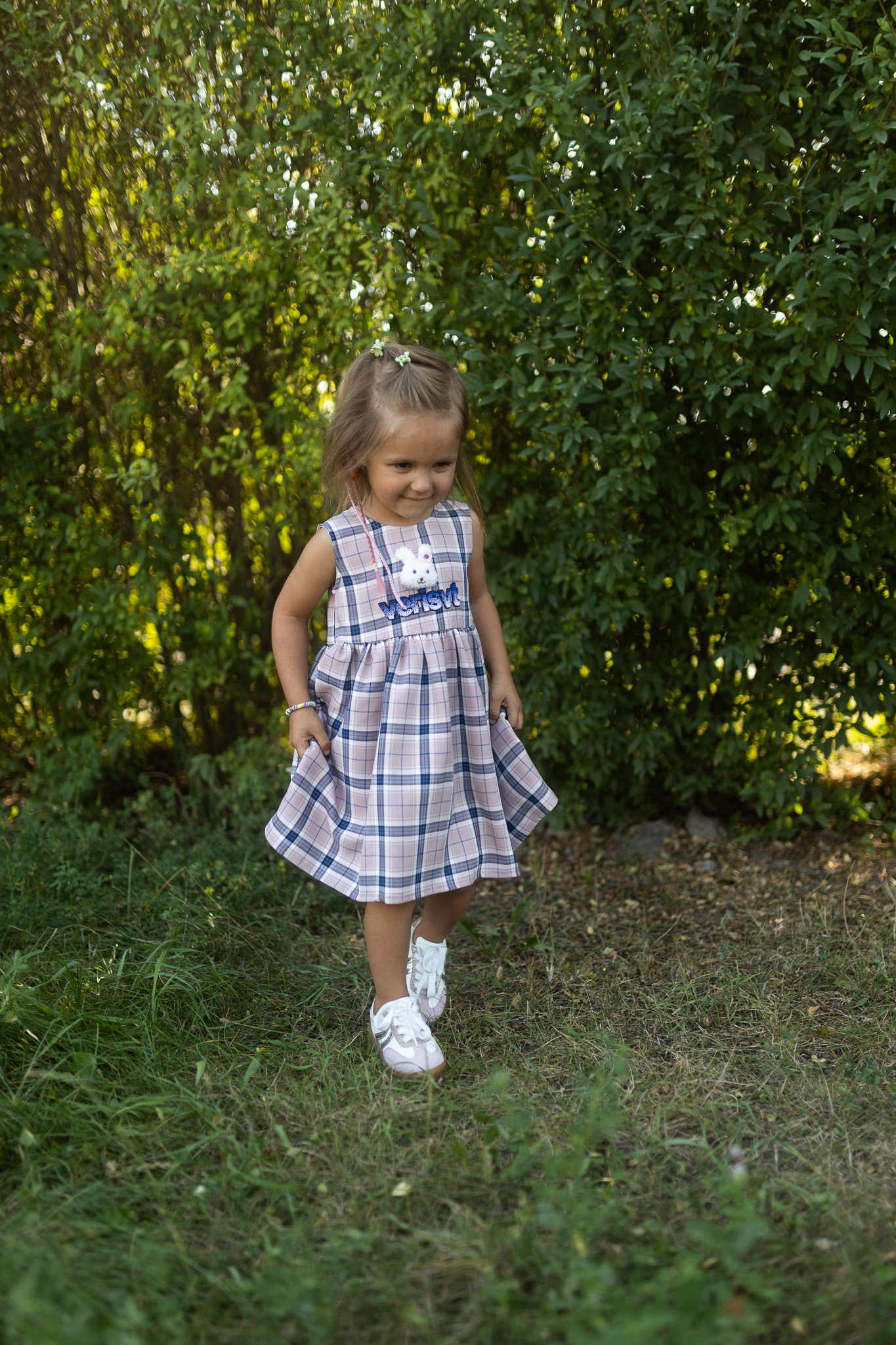 Sukienka bez rękawów w kratkę różowo – granatową z białym króliczkiem