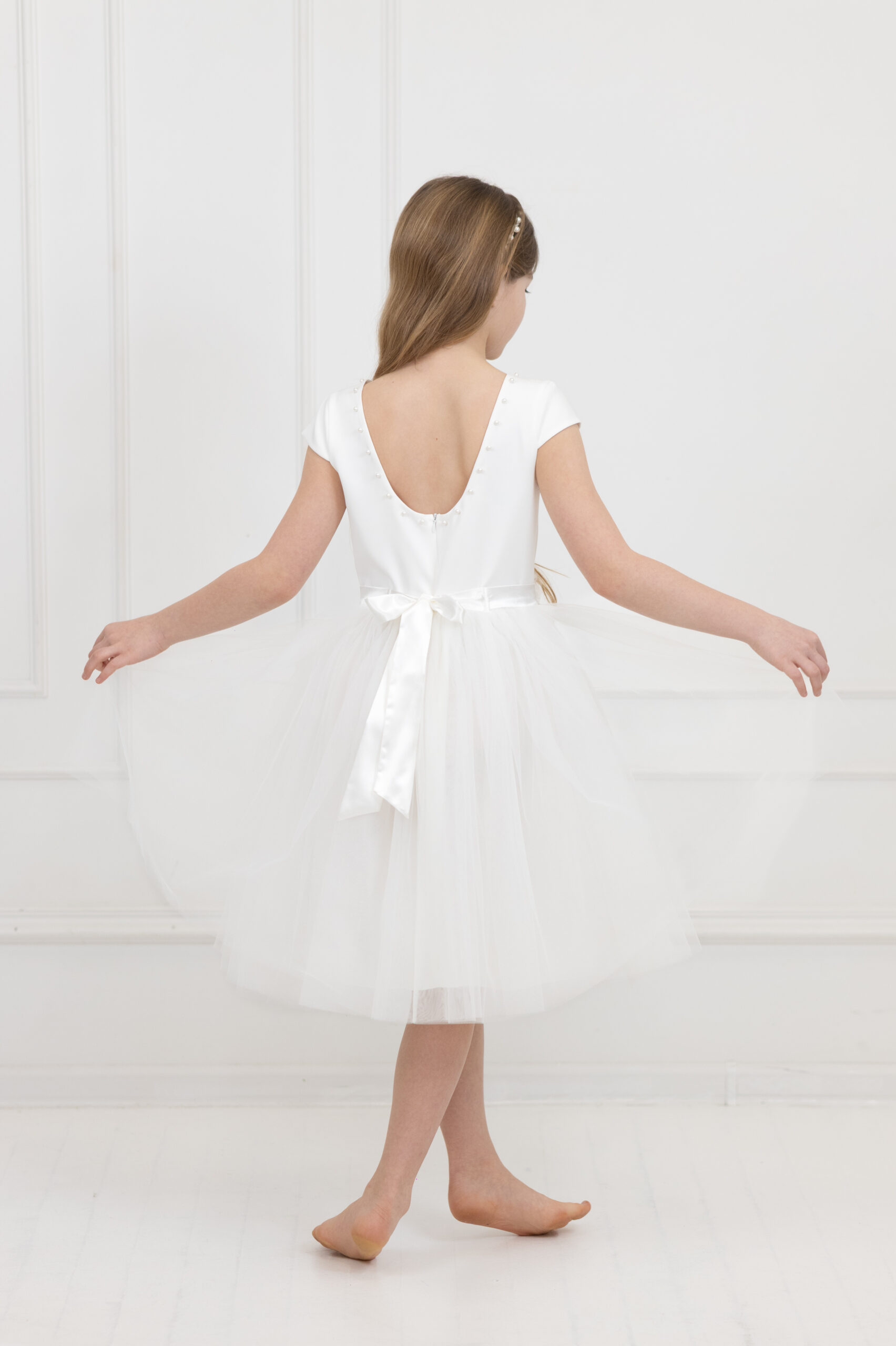 Dół sukienki wykonany jest z trzech warstw tiulu. Długość za kolano